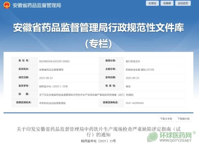 附件:安徽省藥品監(jiān)督管理局中藥飲片生產(chǎn)現(xiàn)場(chǎng)檢查嚴(yán)重缺陷評(píng)定指南(試行)