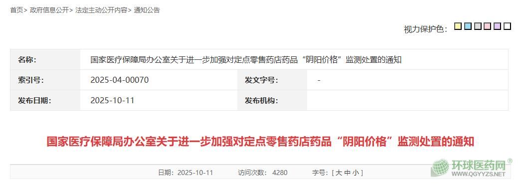 國家醫(yī)保局:進(jìn)一步加強藥品“陰陽價格”監(jiān)測處置近日,國家醫(yī)保局發(fā)布《關(guān)于進(jìn)一步加強對定點零售藥店藥品“陰陽價格”監(jiān)測處置的通知》,針對部分地區(qū)定點藥店對醫(yī)保非醫(yī);颊卟捎谩瓣庩杻r格”(歧視性價格)行為進(jìn)行嚴(yán)肅核查處置。