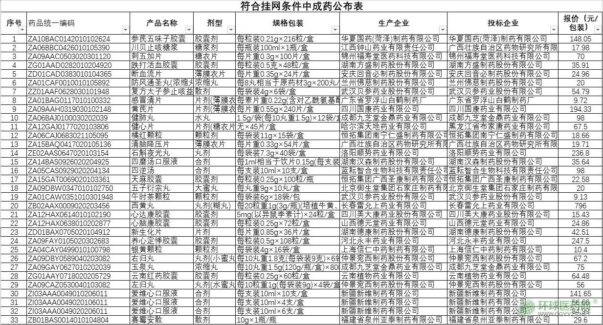 按照我省競價藥品掛網(wǎng)規(guī)定,經(jīng)企業(yè)申訴并經(jīng)進(jìn)一步審核,現(xiàn)將申訴后符合掛網(wǎng)條件的中成藥公布并掛網(wǎng)。