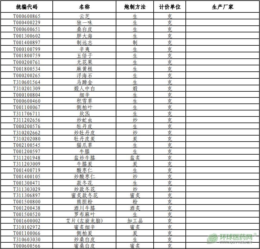 1、部分中藥飲片動態(tài)調(diào)整信息表