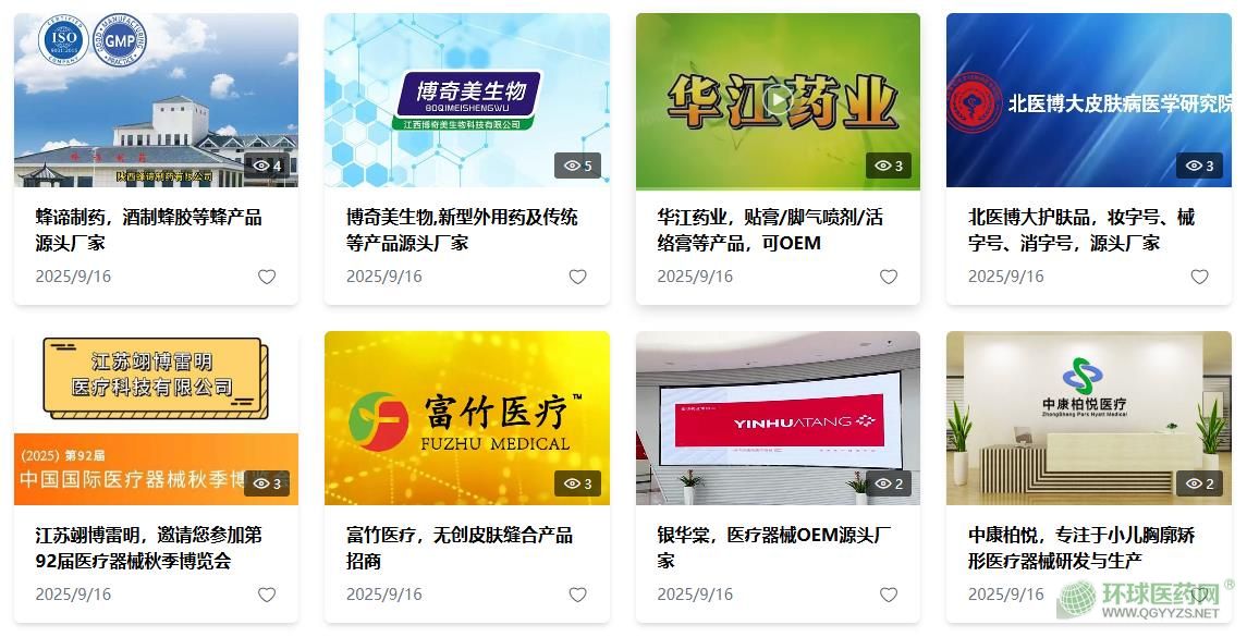 近期,環(huán)球醫(yī)藥網(wǎng)又上線(xiàn)了視頻招商板塊,醫(yī)藥企業(yè)可發(fā)布短視頻,進(jìn)行產(chǎn)品及企業(yè)宣傳。