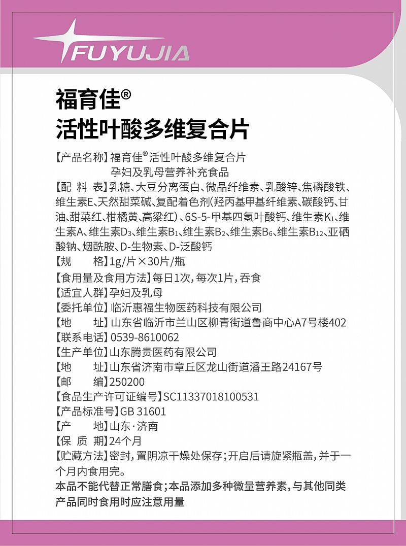 | 產(chǎn)品名稱 | 福育佳活性葉酸多維復合片 |