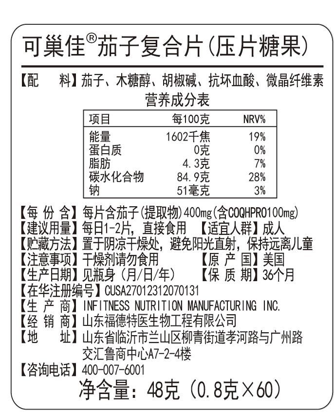 產(chǎn)品名稱: 可巢佳還原型輔酶Q10