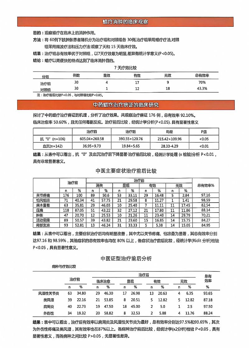 | 補充說明 | 本品為中醫(yī)理療科新技術(shù),為臨床治療風寒濕痹癥提供了一個新的選擇,特別是伴有疼痛的患者,治療效果明顯。 |
