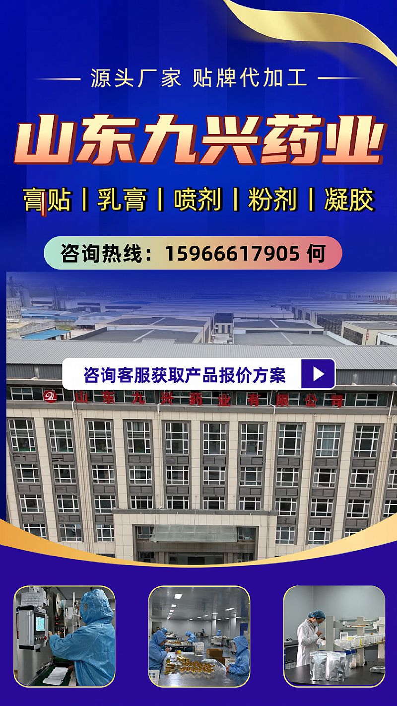 - 山東九興藥業(yè)主營(yíng)膏藥貼牌代加工,老黑膏藥貼牌代加工,理療貼代加工,治療貼代加工,穴位貼代加工,小兒穴位貼代加工,穴位貼敷治療貼代加工,遠(yuǎn)紅外理療貼代加工,磁療貼代加工,熱療貼代加工,三伏貼代加工,暖宮貼代加工,遠(yuǎn)紅外貼代加工,空白裸貼代加工,小兒穴位貼代加工,凝膠代加工,熱療貼代加工,黑膏藥貼代加工,發(fā)熱包代加工,鼻炎噴霧劑代加工,鼻炎貼代加工,凝膠乳膏代加工,活絡(luò)油代加工,前列腺貼代加工,灸熱貼代加工,磁熱療貼代加工,隔物灸代加工,燙熨治療貼代加工,熱奄包代加工,磁灸熱貼代加工,灸熱治療貼代加工,自熱貼代加工,按摩精油代加工,精油代加工,膏藥oem貼牌定制代加工,歡迎有需要膏藥貼牌代加工的朋友來電15966617905咨詢洽談合作。