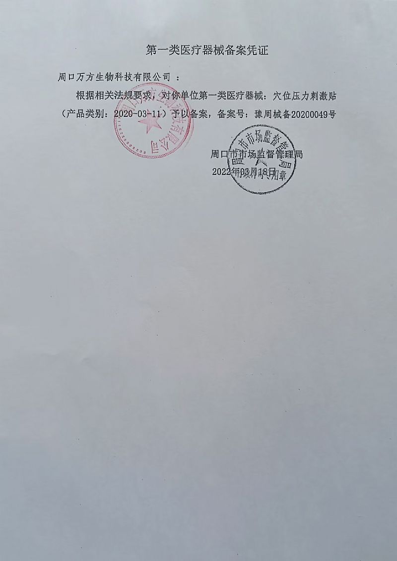 產(chǎn)品用途 | 貼于人體穴位處,進行外力刺激 |